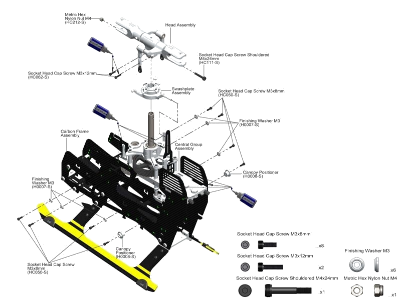 Set van 10 metrische zelfborgende zeskantmoeren (locknuts) M4 H5, ontworpen voor betrouwbare bevestiging in SAB Goblin helikopters. Ideaal voor trillingsbestendige montage van componenten waar extra zekerheid tegen losdraaien gewenst is.